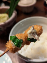 In its essence, kushikatsu is food on a skewer, fried with a breading. Think chicken nuggets on a stick.